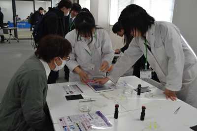 本学と連携授業を実施している鳥羽東中学校教諭の橋爪勇樹氏は「中学校・大学連携における生き物教材の開発と授業実践」と題して、中学校1~3年生に対する理科の授業実践成果を発表しました。いずれも大変好評で全国の高校生、高等学校の先生方や大学生、大学教員に向けて情報を発信することができ、学生にとって貴重な経験となりました。今後も研究活動に邁進してほしいと思います。