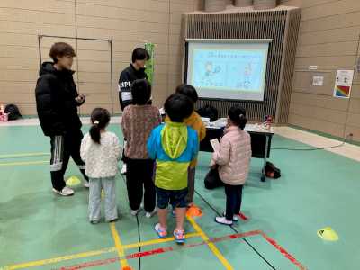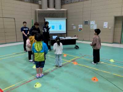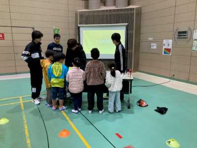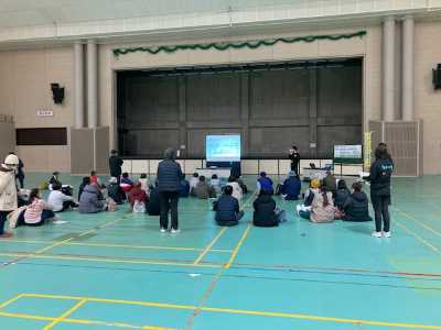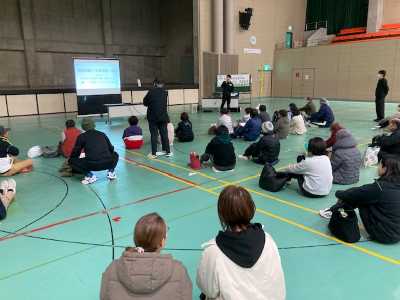2月11日(水・祝)に、伊勢市健康課主催の、「ヘルスアドバイザーと健康課の共同企画 健康の日における啓発事業 ウォーキング大会」が開催され、本学健康科学研究室の3年生が、参加した住民(成人)に対し、身体活動・運動やウォーキングが健康に及ぼす効果やウォーキングをする際の注意事項について30分間の講話を、親と一緒に連れられてきた子ども(小学生以下)には、大人が講話を聴いている間、スポーツに関するクイズ大会を催し、楽しい時間を提供しました。その後は、天候が良ければみんなで大仏山公園でウォーキングをする予定でしたが、あいにくの天候のため、体育館内でウォーキングを兼ねた運動を1時間おこないました。